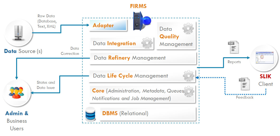 Arsitektur FIRMS mendukung berbagai kebutuhan sehingga pengguna dimudahkan untuk melakukan validasi maupun perbaikan data. Melalui Data Quality Management yang sesuai standar OJK menjadikan FIRMS sebagai solusi dalam proses pelaporan data informasi debitur oleh Lembaga Jasa Keuangan (LJK).