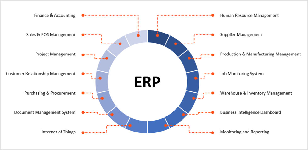 ERP adalah sistem informasi yang diperuntukkan bagi perusahaan yang berperan mengintegrasikan dan mengotomasikan proses bisnis yang berhubungan dengan aspek operasional, produksi maupun distribusi di perusahaan bersangkutan. Kebutuhan fitur ERP suatu perusahaan berbeda-beda bergantung pada kategori bisnis perusahaan (manufaktur, jasa atau perdagangan) serta proses bisnis dan operasional pada suatu perusahaan. Perusahaan umumnya memiliki keunikan tersendiri dalam menjalankan operasionalnya sehingga tidak dapat menggunakan aplikasi ERP yang sudah jadi, sehingga dibutuhkan custom development (custom ERP) agar sesuai dengan kebutuhan perusahaan.